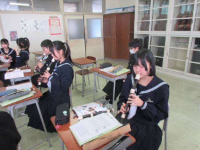 1組は音楽。アルトリコーダーの練習をしています。