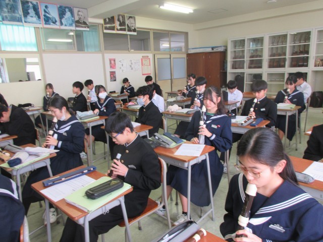 3組は音楽。ソプラノとアルトリコーダーの演奏をしています。