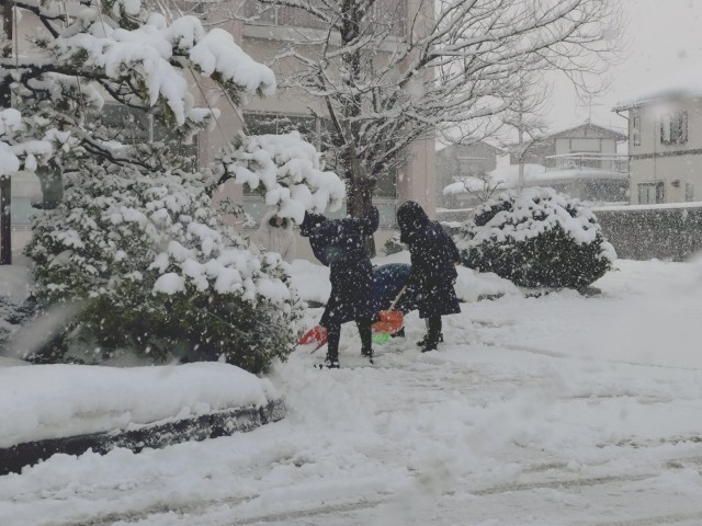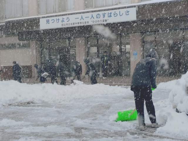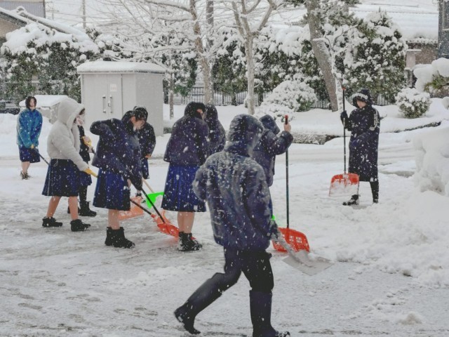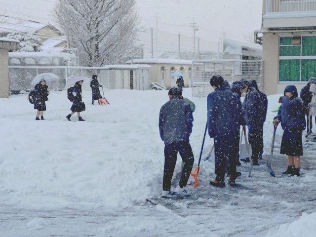 今朝も当番クラスの生徒たちやお手伝いの生徒たち、教職員で除雪を行いました。