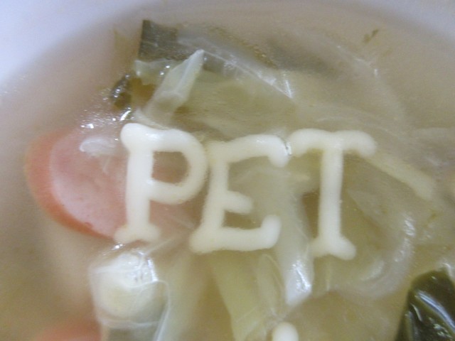 スープには、アルファベット型のマカロニが浮かんでいます。入っていた文字を並べて単語をつくる。箸の練習しながら単語を覚える。一石二鳥です。
