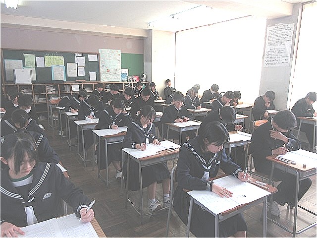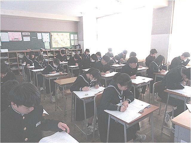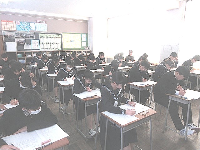 2年生は、1限から5限まで5教科を一日で行う確認テストを行いました。高校入試と同じ1教科40点満点のテストになります。ほとんどの生徒が時間いっぱいテストに取り組みました。