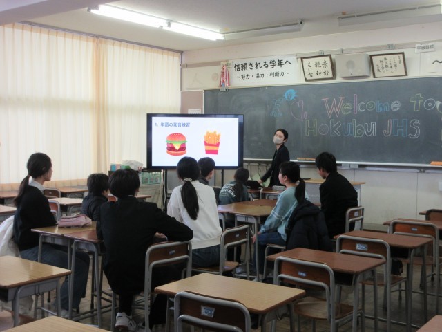 英語では、発音練習やカード取り、英会話で中学生と楽しみました。
