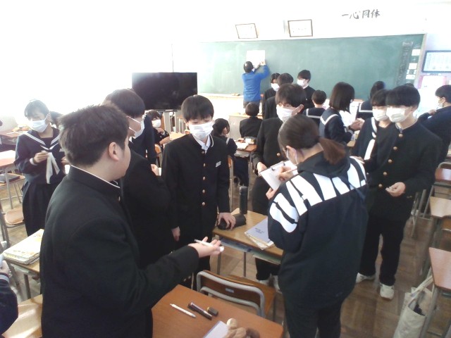 2年教室の様子です。感染症予防のため、一人一人検温し健康観察を丁寧に行っています。