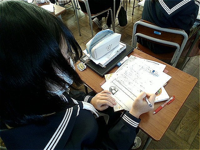 2年技術・家庭科(家庭分野)の様子です。生徒たちは、試験範囲のハンドノートや提出するプリントを黙々と進めていました。