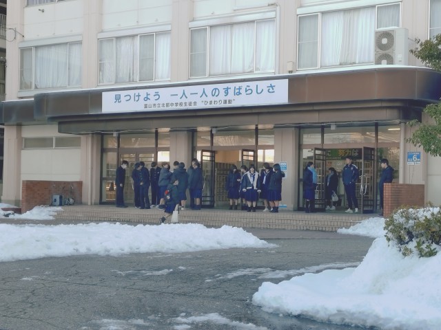 2月10日(火)登校風景 公開日 2026/02/10 更新日 2026/02/10 北中NEWS 今朝も厳しい冷え込みとなりました。昨日までに積もった雪は凍っています。それでも玄関には、朝の挨拶をする元気な声が聞こえていました。