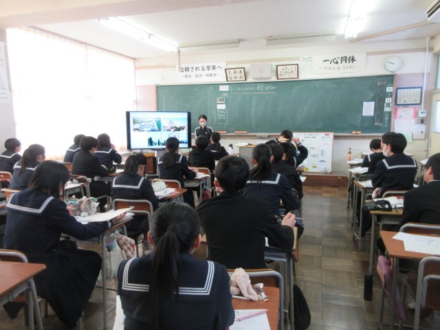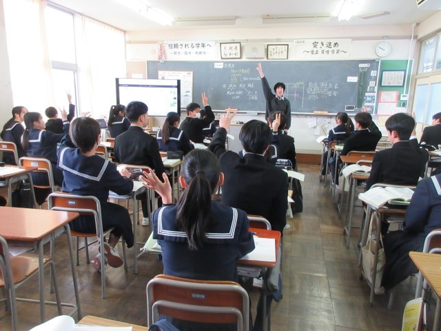 2月13日(金)2年授業風景 公開日 2026/02/13 更新日 2026/02/13 第2学年 2年授業風景です。1組は英語。英文を読みながら、英語の理解を深めました。3組は理科。窓から外を見て、現在の風力はどれくらいか考えました。
