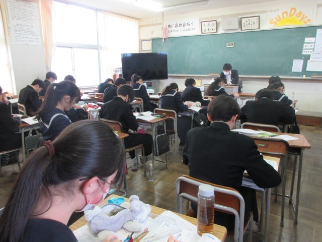 第4回定期考査は、1,2年生は、18日(水)~20日(金)の3日間、3年生は、18日(水)19日(木)の2日間で行う予定です。