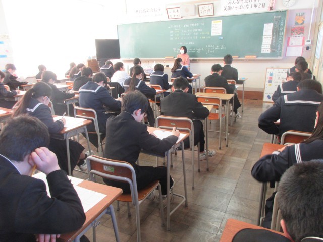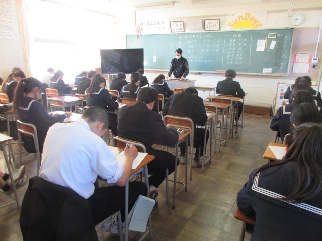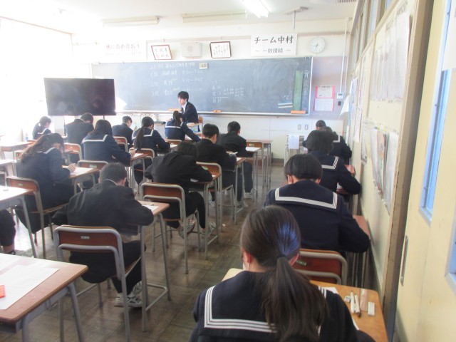 第4回定期考査1日目です。1年生は、1限保健体育科、2限英語科、3限数学科です。生徒たちは、真剣にテストに取り組んでいます。