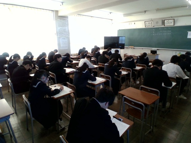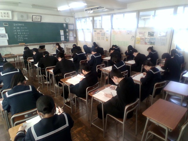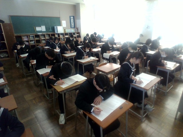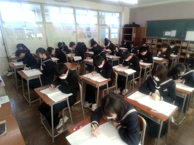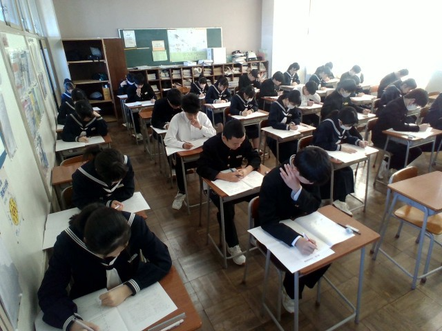 1限社会、2限国語でした。生徒たちは、真剣に問題に取り組んでいました。