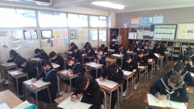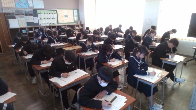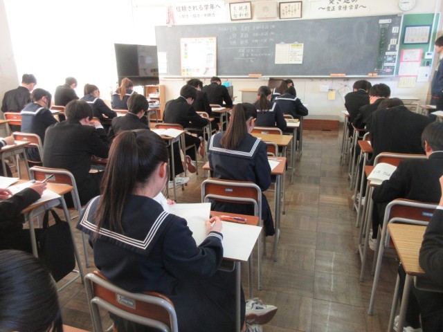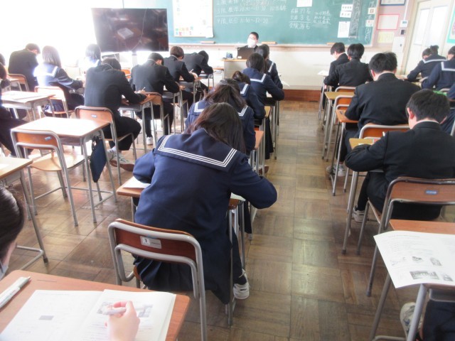 2年定期考査の様子です。1限美術科、2限英語科、3限数学科です。朝からワークや教科書で勉強する生徒が多数いました。
