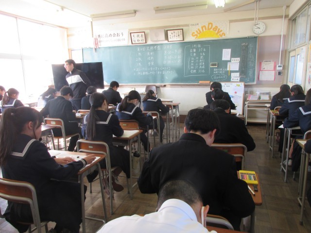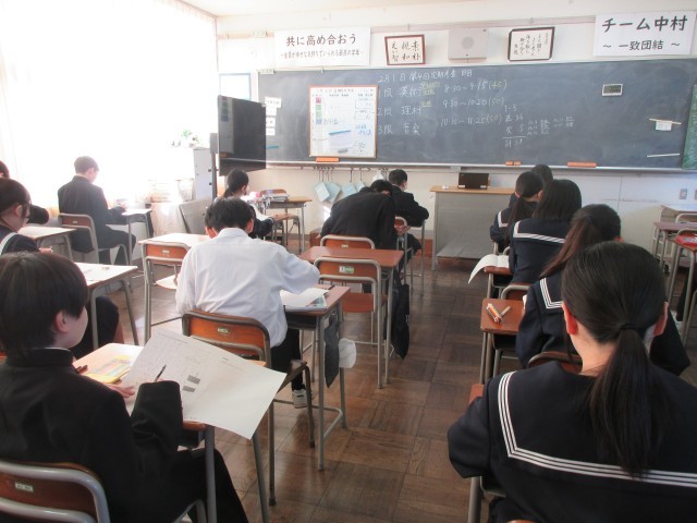 2月20日(金)1年第4回定期考査(3日目) 公開日 2026/02/20 更新日 2026/02/20 第1学年 1年定期考査3日目です。本日は、1限美術、2限理科、3限音楽です。生徒たちは、真剣に取り組んでいました。