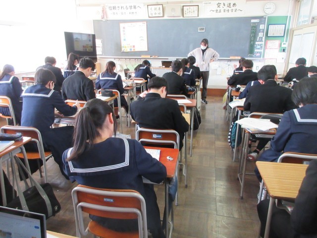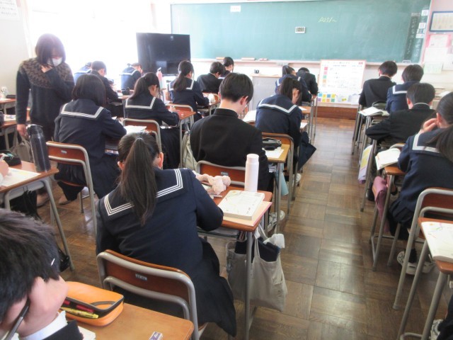 1組は国語。文法についてカラープリントを使用して学んでいます。