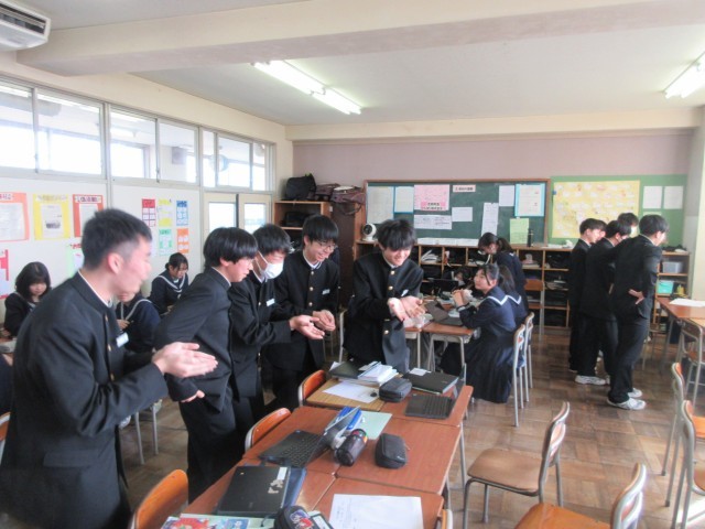 2組は保健体育。ダンスの曲決め、振り付けをクロムブックを使って考えています。