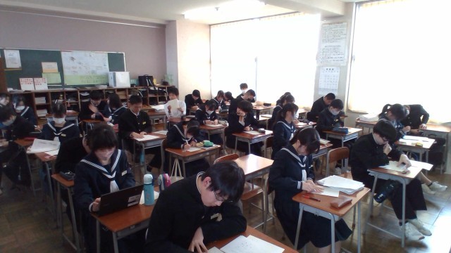 3年学活では、これまでお世話になった方に感謝の手紙を書きました。もうすぐ卒業です。卒業式では、3年生の立派に成長した姿を楽しみにしています。
