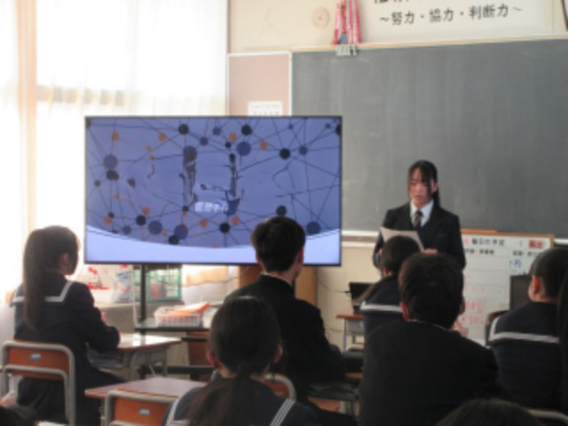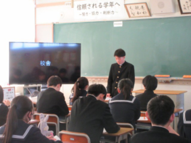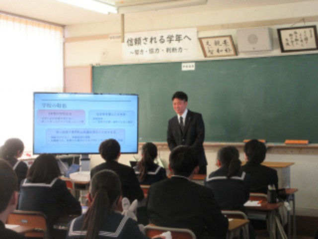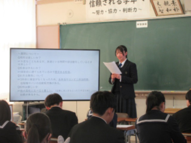 高校の特徴や勉強、中学校生活でやっておいたほうがいいことなど、先輩から多くのことを学ぶ貴重な機会となりました。生徒は先輩の話す内容をメモを取りながらしっかりと耳を傾けて話を聞いていました。