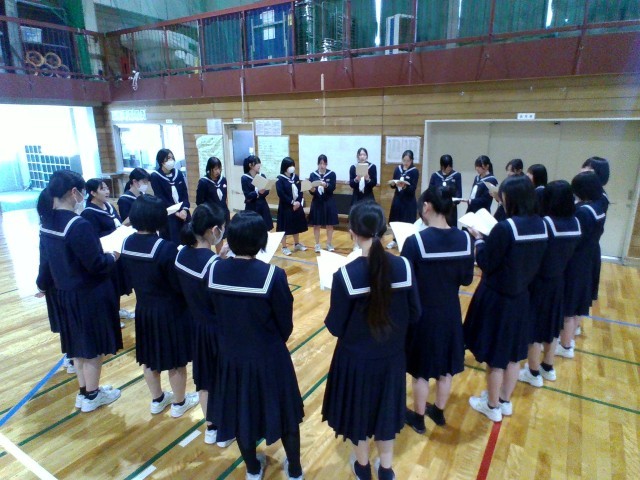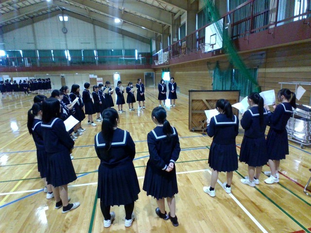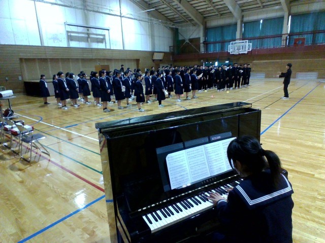 3年卒業式に歌う歌の練習の様子です。最初に卒業式の歌の指揮者と伴奏者、校歌の伴奏者の紹介がありました。その後、パートに別れ、パートリーダー中心に練習し、後半は、全体で歌声を合わせました。卒業式当日の歌声を楽しみにしてください。