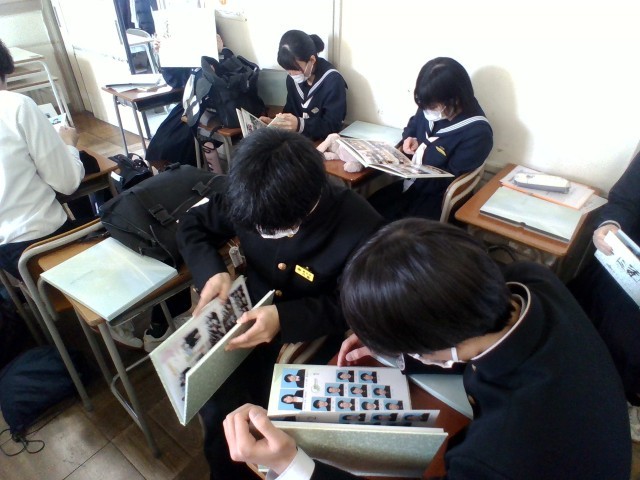 3年生の5限目は学活。卒業アルバムを配付しました。生徒たちの頭には、3年間の日々がかけめぐったことでしょう。