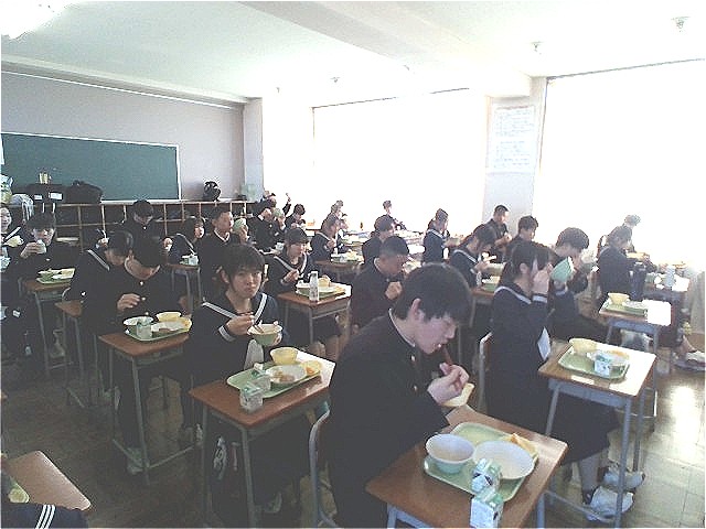 3年生最後の給食の様子です。生徒たちは、楽しくおいしく給食を味わいました。