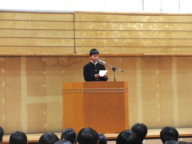 新生徒会長は、「全員が楽しいと思える学校」にするために、生徒みんなの意見を聞きたいと抱負を語りました。