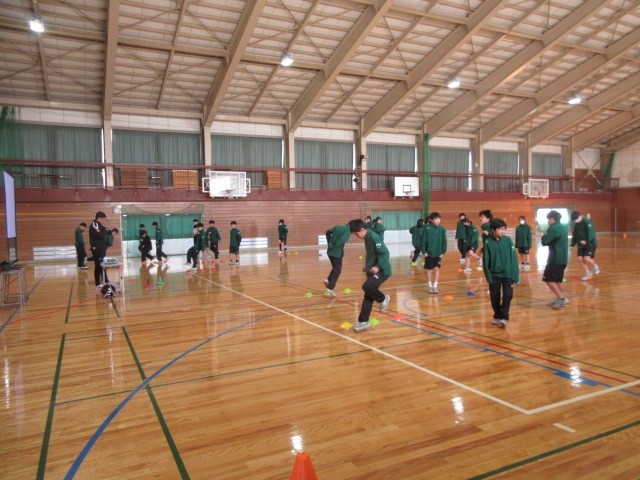 2組は保健・体育。ダンスの前に皆でウオーミングアップ中です。
