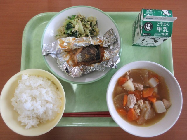 さばの銀紙焼き、ごま和え、