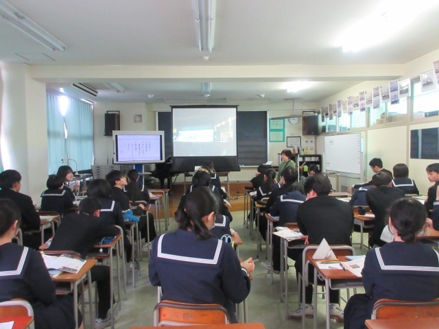 2年授業風景です。1組は理科。2組は音楽。3組は国語。どの教科も2年生のまとめを行っています。今日で2年生の授業が終わりました。授業終わりには担当教員に感謝の言葉を伝えていました。