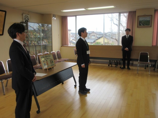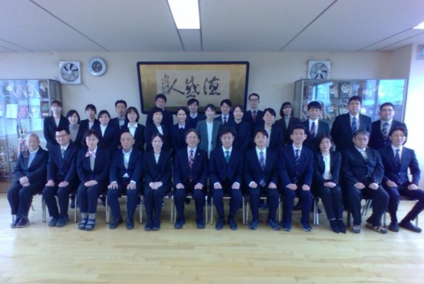 新しく社会人としてのスタートを切った新規採用教員の服務の宣誓に全教職員が立ち会い、それぞれの初心を思い出し、気持ちを新たにしました。最後に全員で集合写真を撮りました。