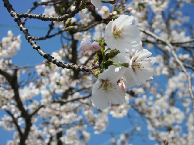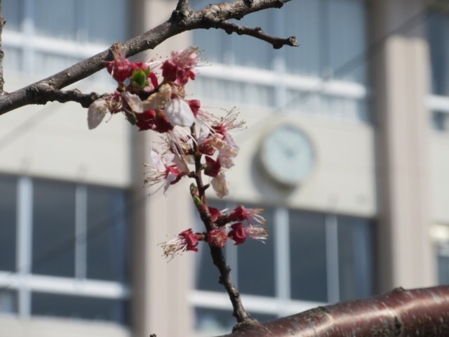 敷地内には、「桜の名所」が何か所かあります。始業式、入学式まで保つことができるかどうか。