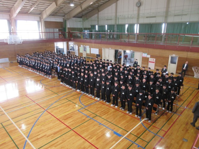 明日行う入学式の予行を行い、生徒たちは歌練習を行いました。
