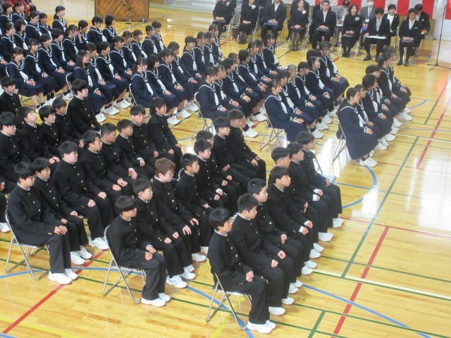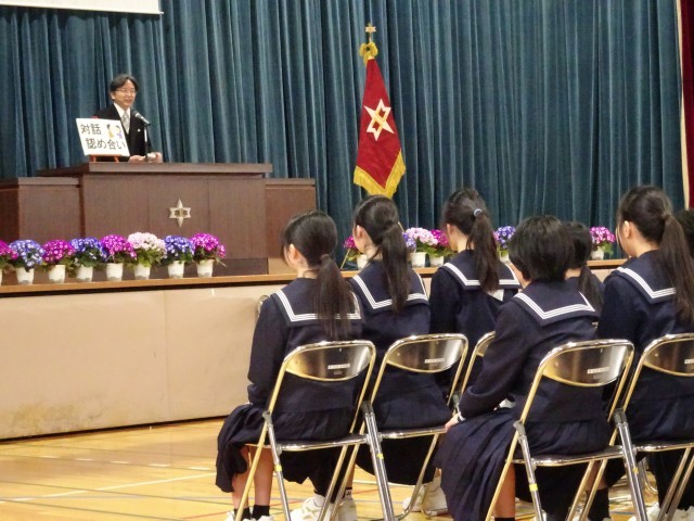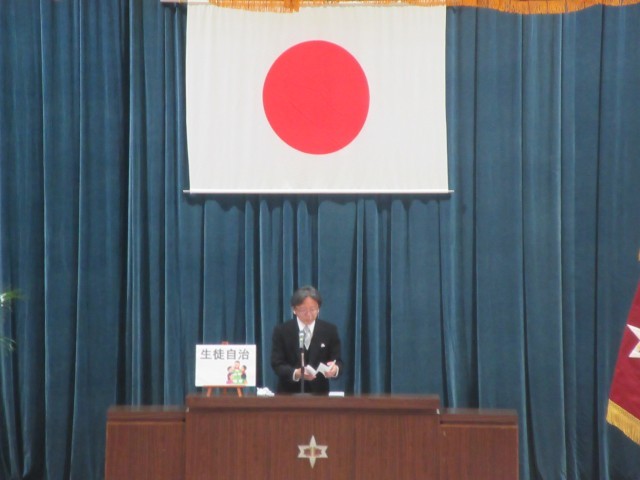 校長は式辞で、「中学校は、大人になるための練習として、自分たちで考え行動する「生徒自治」に取り組みます。その基盤となる「対話と認め合い」を大切にしながら、周囲と心を通わせることで、素敵な大人へと成長することを願っています」と述べました。