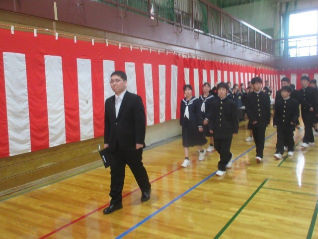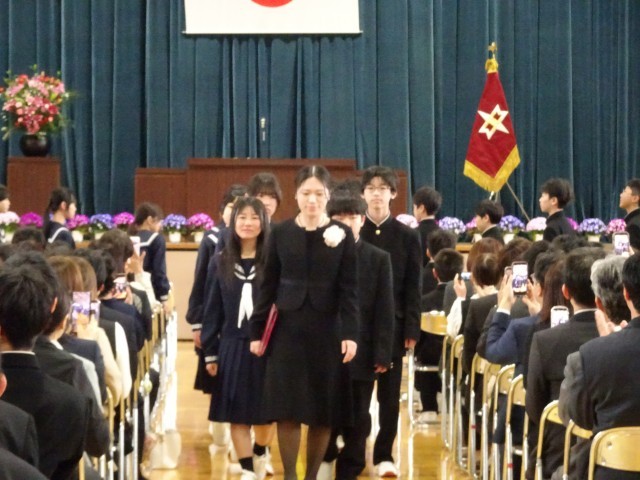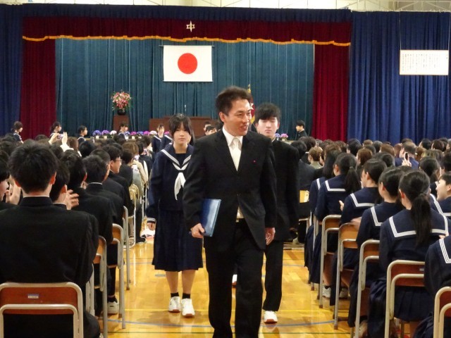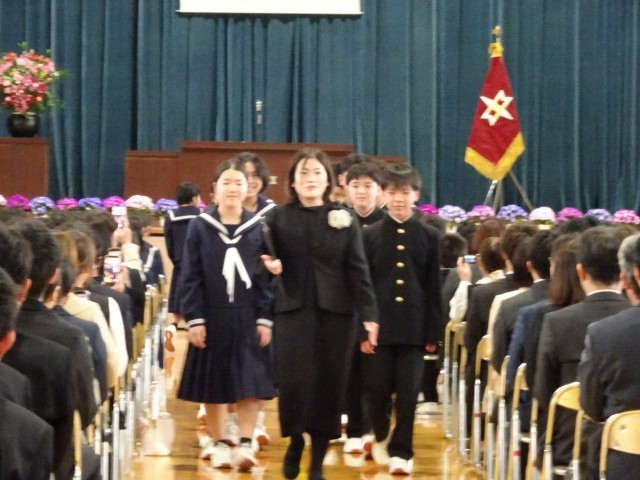 教職員の紹介の後、校歌を斉唱し、新入生に校歌を紹介しました。そして退場です。