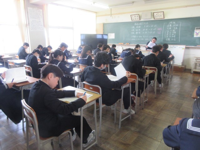 2年生は春休み明けテストを行いました。1日目の今日は、国語・社会・数学です。皆、真剣に取り組んでいます。明日は理科と英語のテストが実施予定です。