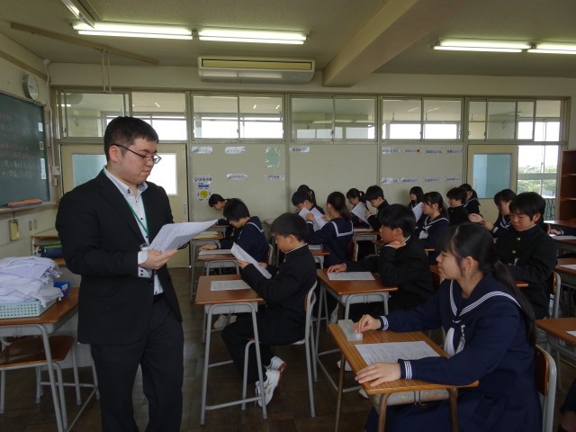 1年生の中学校生活がスタート。1、2限目は新入生のしおりを使いながら中学校の仕組みを知ったり、自己紹介をして様々な人と関わったりしました。どのクラスも落ち着いて活動に取り組んでいました。