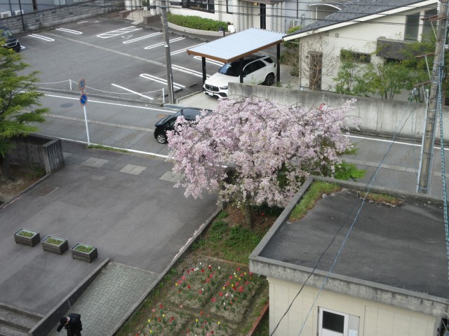 前庭の桜が満開となりました。生徒会の挨拶運動にも多くの生徒が参加しています。
