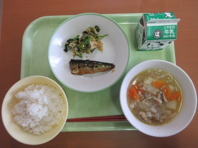 いわしの梅煮、いり大豆和え、塩肉じゃが です。