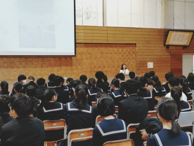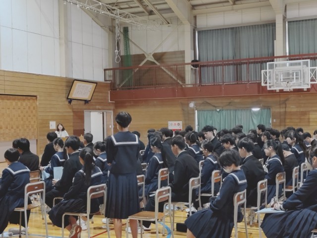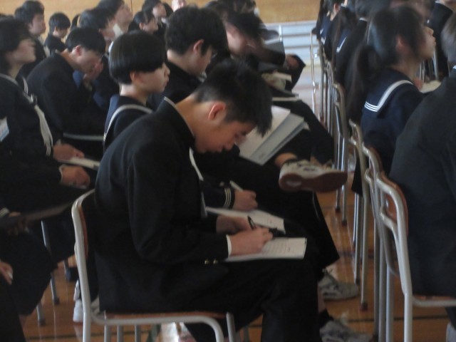 生徒たちは、メモを取りながら、最後まで熱心に話を聴きました。