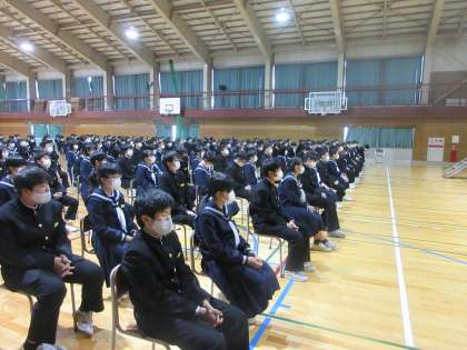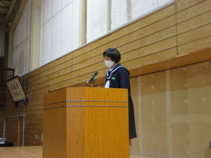令和3年度第1学期始業式を行いました。 始業式に先だって、代表生徒が意見発表を行いました。
