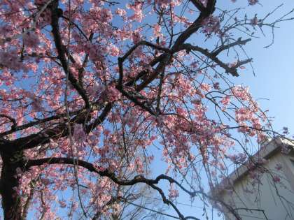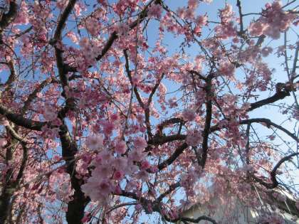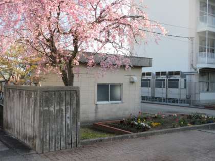 校門横のしだれ桜が、明日の入学式を控え、満開に近付いています。 明日の入学式の撮影ポイントは、こちら!!