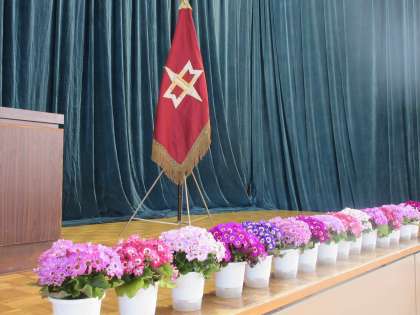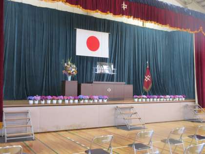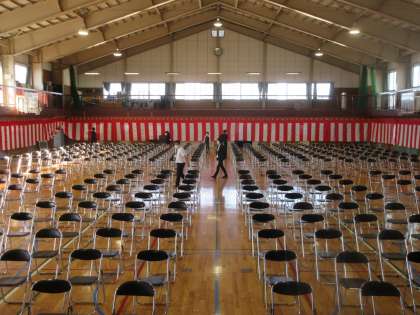 さあ、会場は出来上がりました。 新入生の皆さん、明日、お待ちしています!!