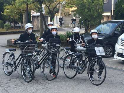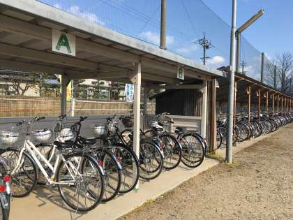 1年生は、本日が自転車点検…自転車小屋には、真新しい自転車が並びました。