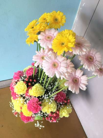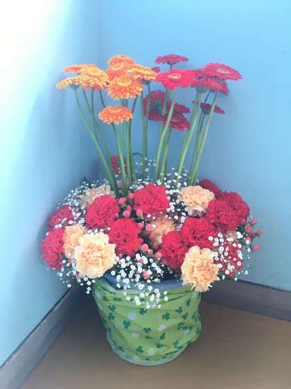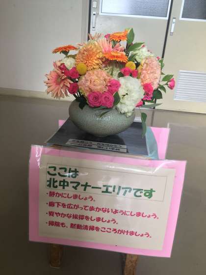 入学式でいただきました、たくさんの花々が、かたちを変え、生徒の活動を見守ります。