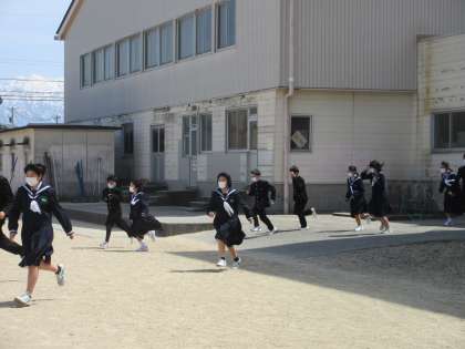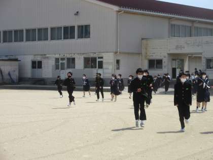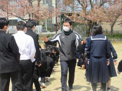 真剣に参加しています!! 担任が肩に触れながら人員確認です。