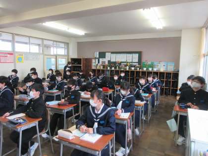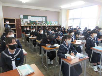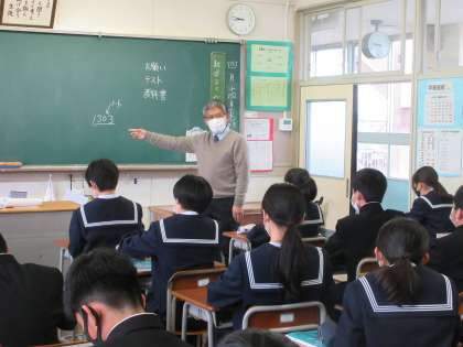 数学の授業です。授業の進め方を確認しました。 集中しています。みんな、顔が同じ方向に向いています。