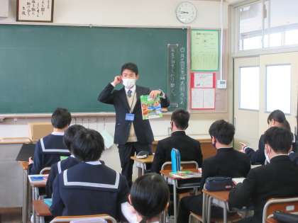 社会の授業です。 教科担任の自己紹介からスタートです。