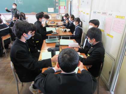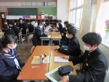 数学の授業です。 グループ学習の進め方を確認しました。