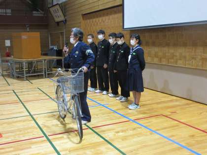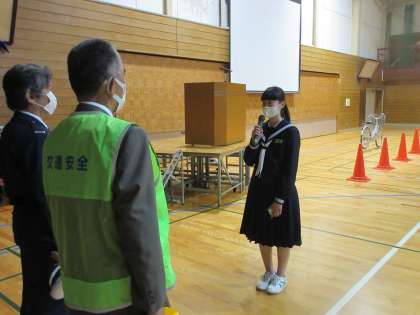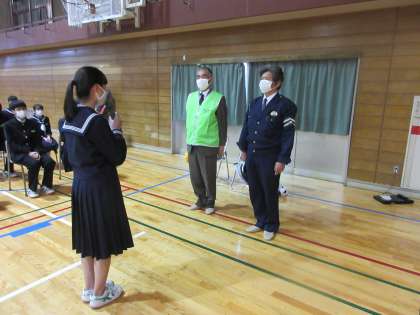 代表生徒が、感謝の言葉を述べました。 しっかり交通安全の意識をもち、安全に登下校しましょう!!