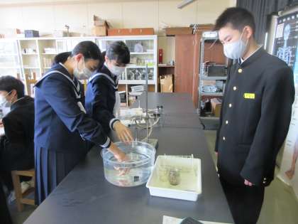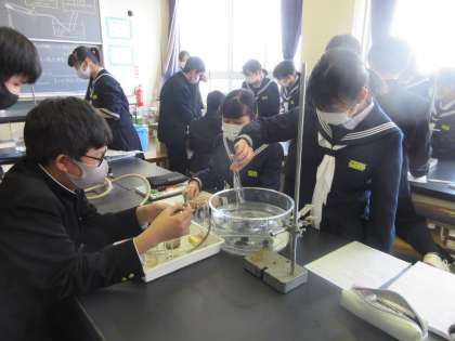 グループで協力して、実験の準備を行います。 「試験管に空気が残らないようにしなくっちゃね!!」