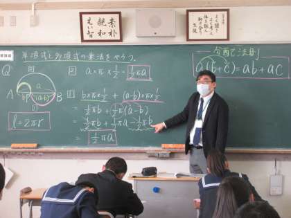 数学の授業です。 単項式と多項式の乗法を学習しました。