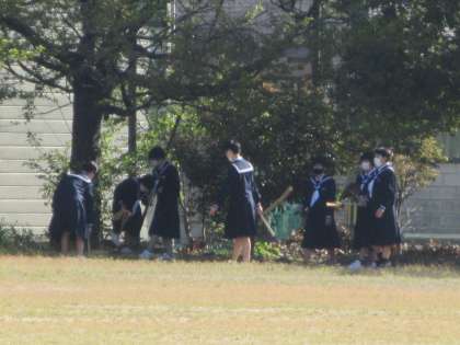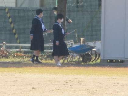 女子バレーボール部が、敷地内のごみ拾いを行いました。