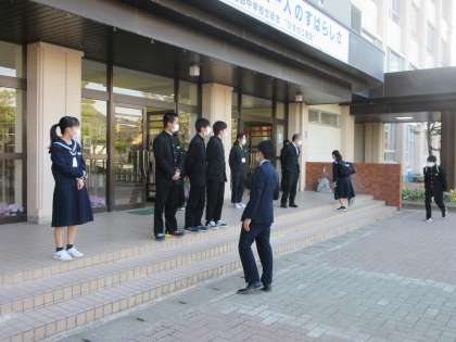 執行部を中心に、あいさつ運動を行いました。 朝から気持ちのよい挨拶が飛び交います!!